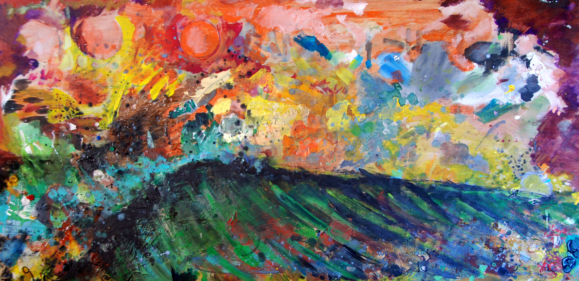 Workbench monologues is a series of abstract surreal surf art and landscape paintings that often focus on a theme. That theme could be environmental, personal growth, or any other similar topics. I will hide images within the work such as eyes, animals, or subject matter related to the overall theme. They are very organic and texture heavy. Zoom in and take a closer look at paintings within the paintings and see what there is beyond the obvious.