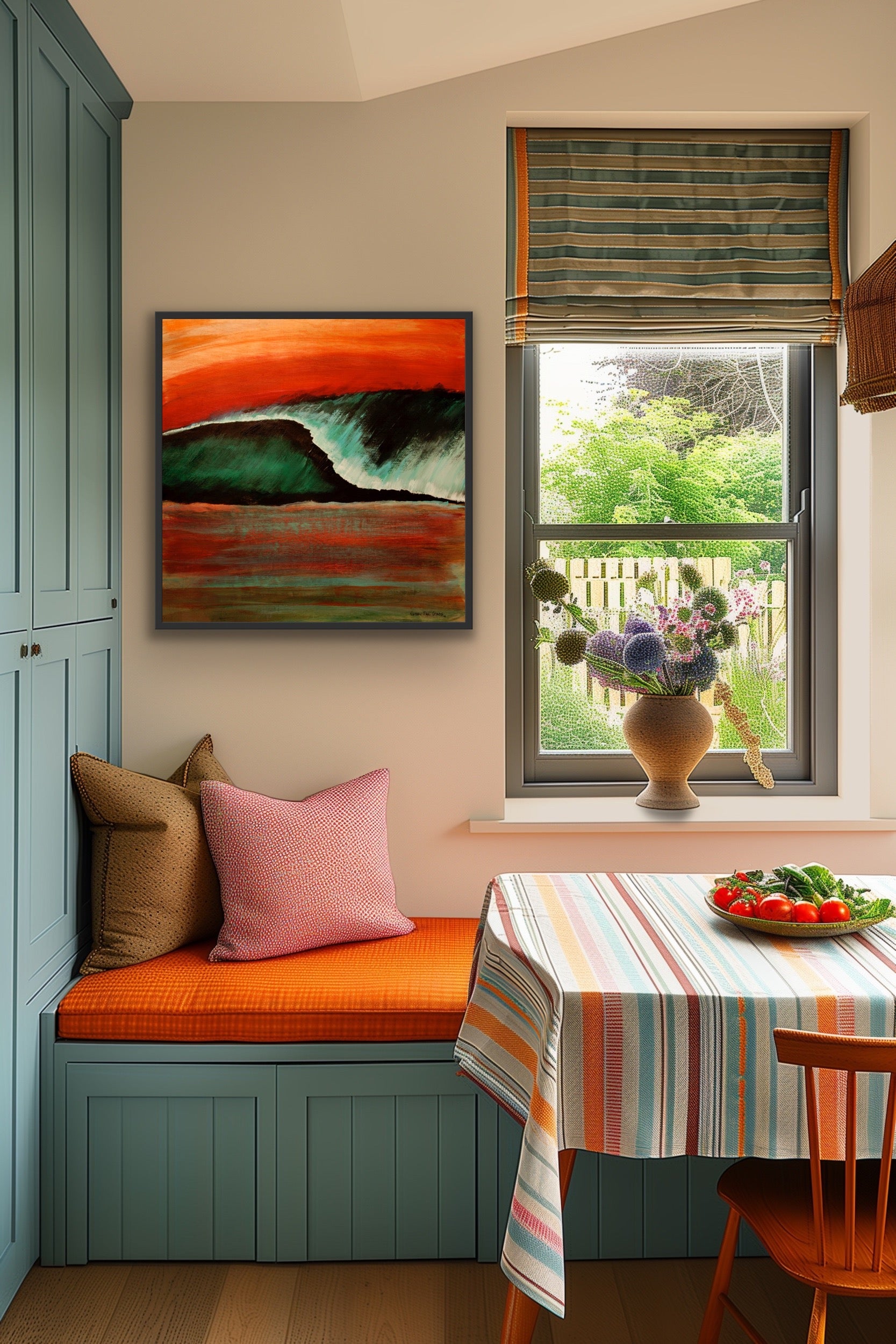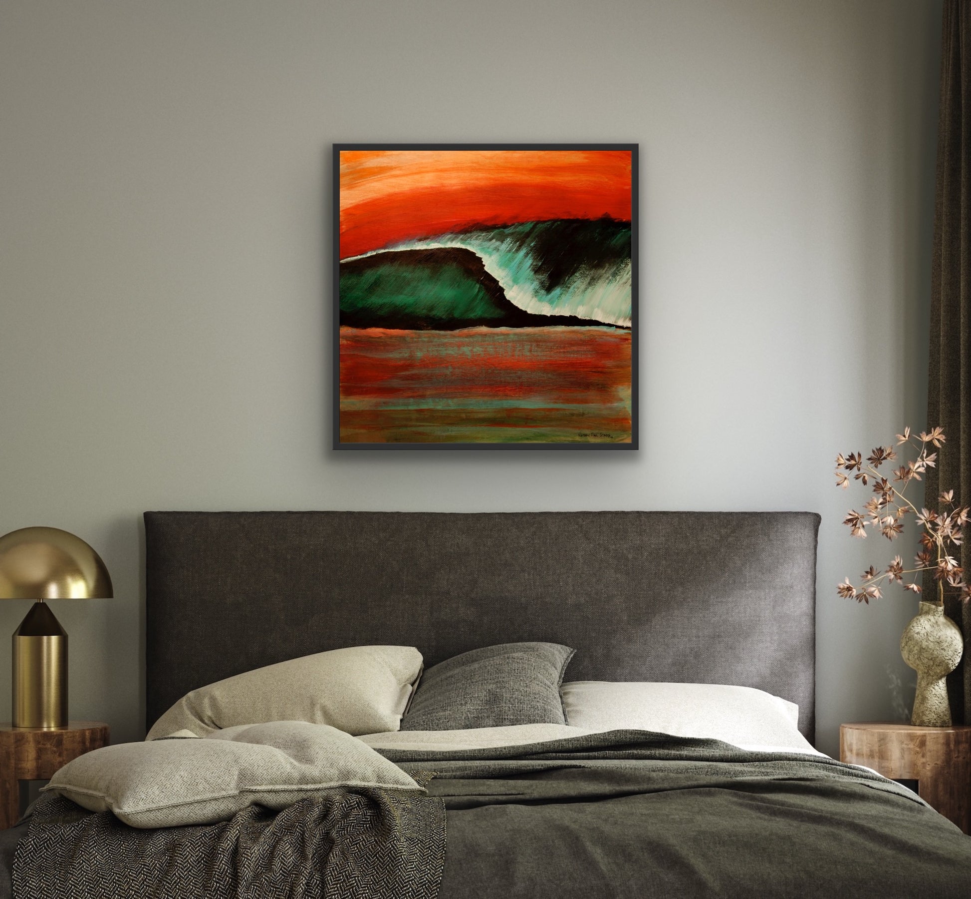 The Dark and Light series takes a modern simplistic approach to a classic beach and ocean scene. I use a dark under layer behind the waves, and a lighter wash on the sky and foreground that allows the natural wood grain to be a part of the painting. I also use perspectives and colors in variations and combinations that allow the collector to find that perfect piece.