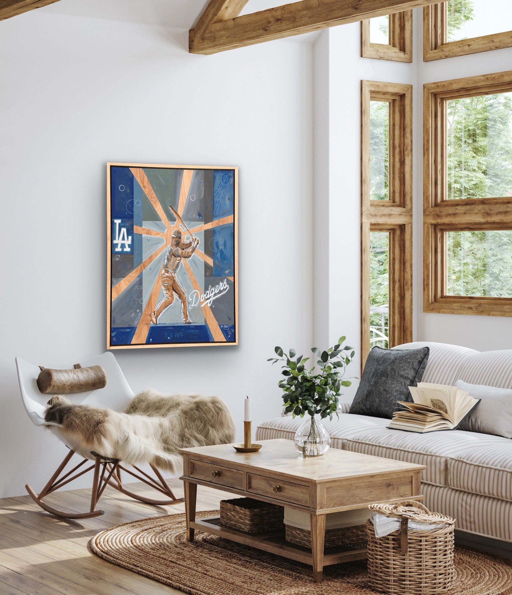 A perfect choice for collectors of LA Dodgers wall art, this piece speaks to the heart of every Dodgers fan, combining modern design with nostalgic Americana. Whether you’re a die-hard baseball fan or a lover of Los Angeles sports art, this modern athlete portrait delivers the energy and pride of the game.