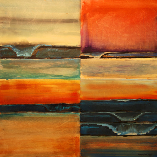 The Dark and Light series takes a modern simplistic approach to a classic beach and ocean scene. I use a dark under layer behind the waves, and a lighter wash on the sky and foreground that allows the natural wood grain to be a part of the painting. I also use perspectives and colors in variations and combinations that allow the collector to find that perfect piece.