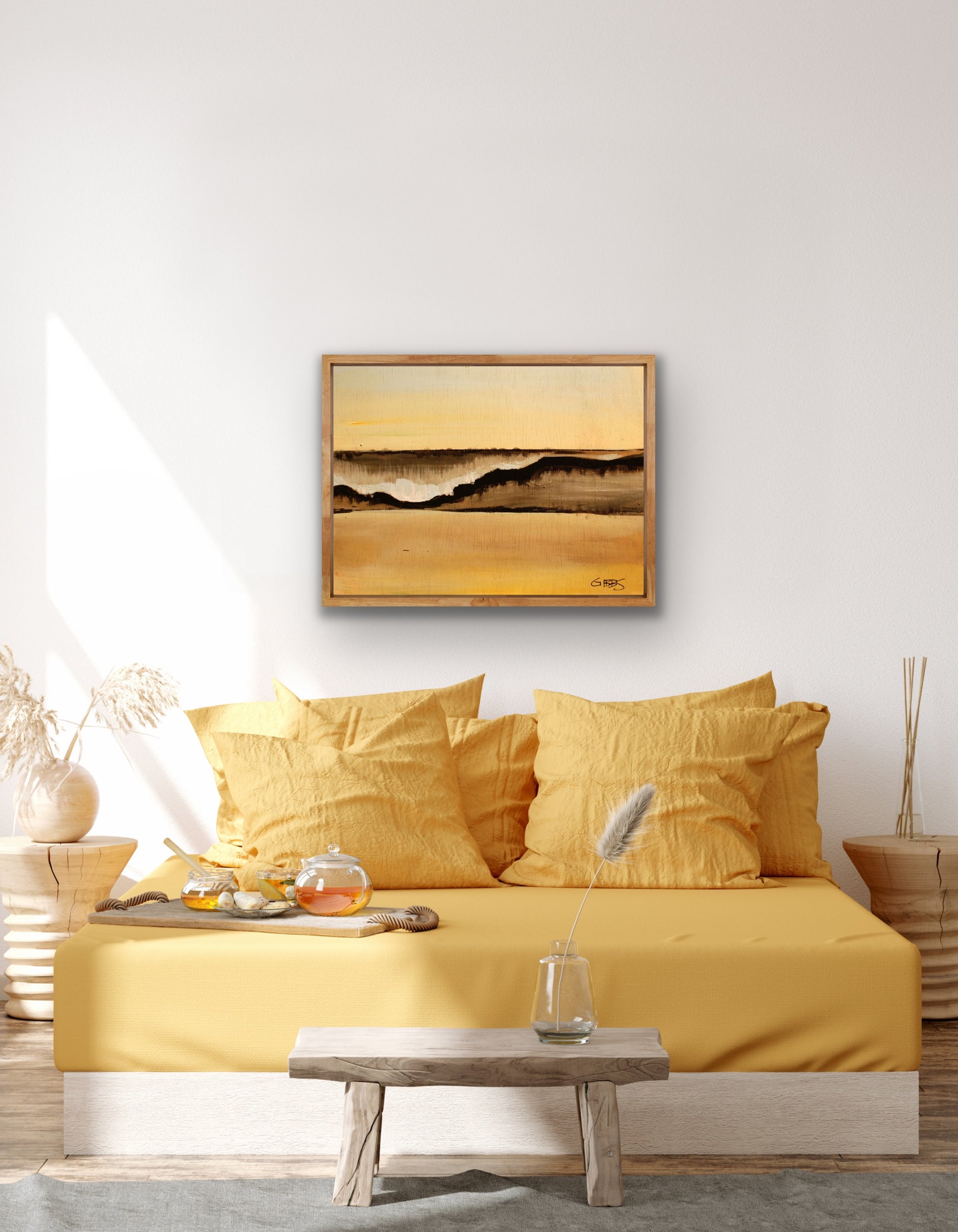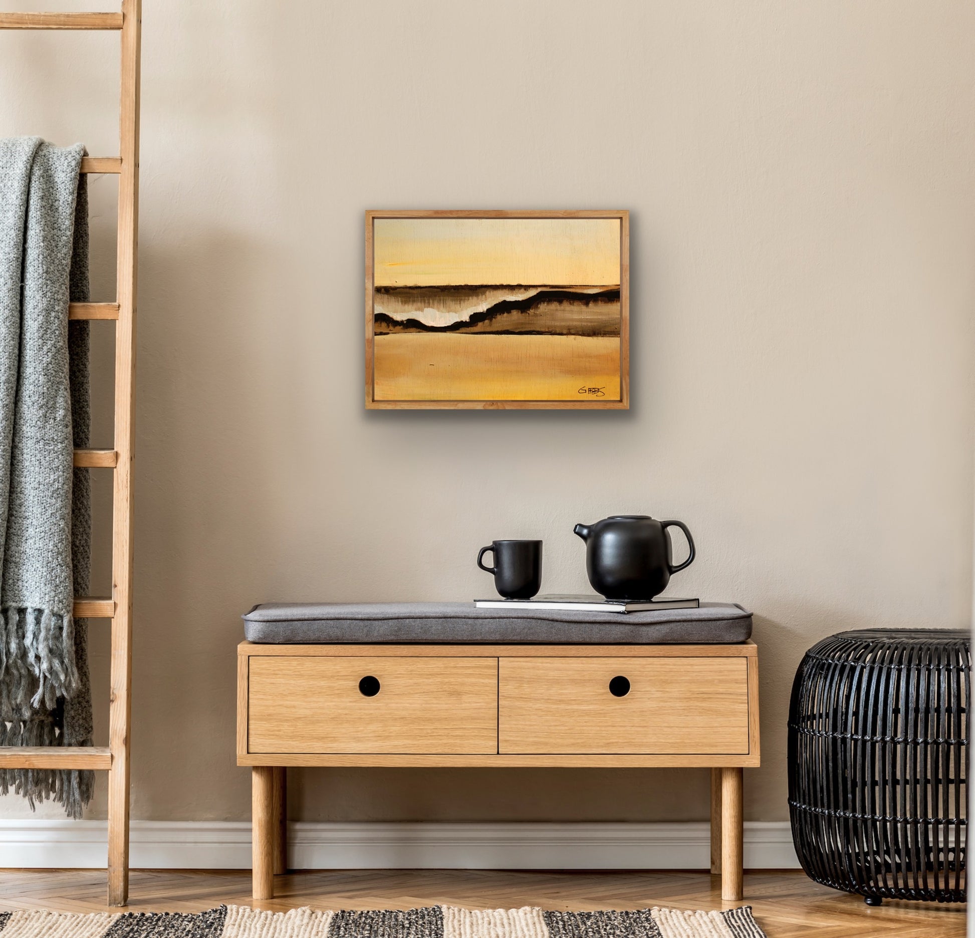 The Dark and Light series takes a modern simplistic approach to a classic beach and ocean scene. I use a dark under layer behind the waves, and a lighter wash on the sky and foreground that allows the natural wood grain to be a part of the painting. I also use perspectives and colors in variations and combinations that allow the collector to find that perfect piece.