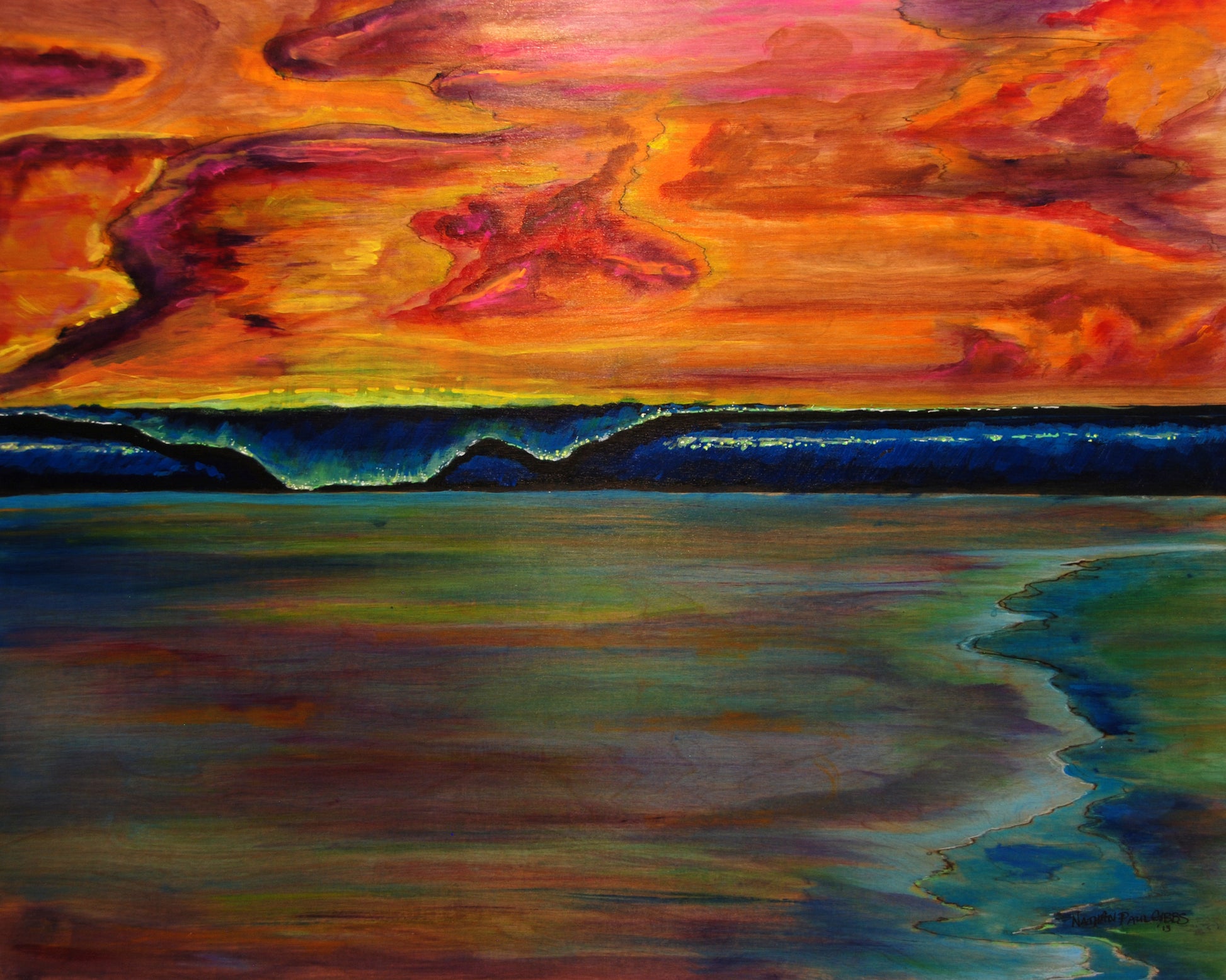 The Dark and Light series takes a modern simplistic approach to a classic beach and ocean scene. I use a dark under layer behind the waves, and a lighter wash on the sky and foreground that allows the natural wood grain to be a part of the painting. I also use perspectives and colors in variations and combinations that allow the collector to find that perfect piece.