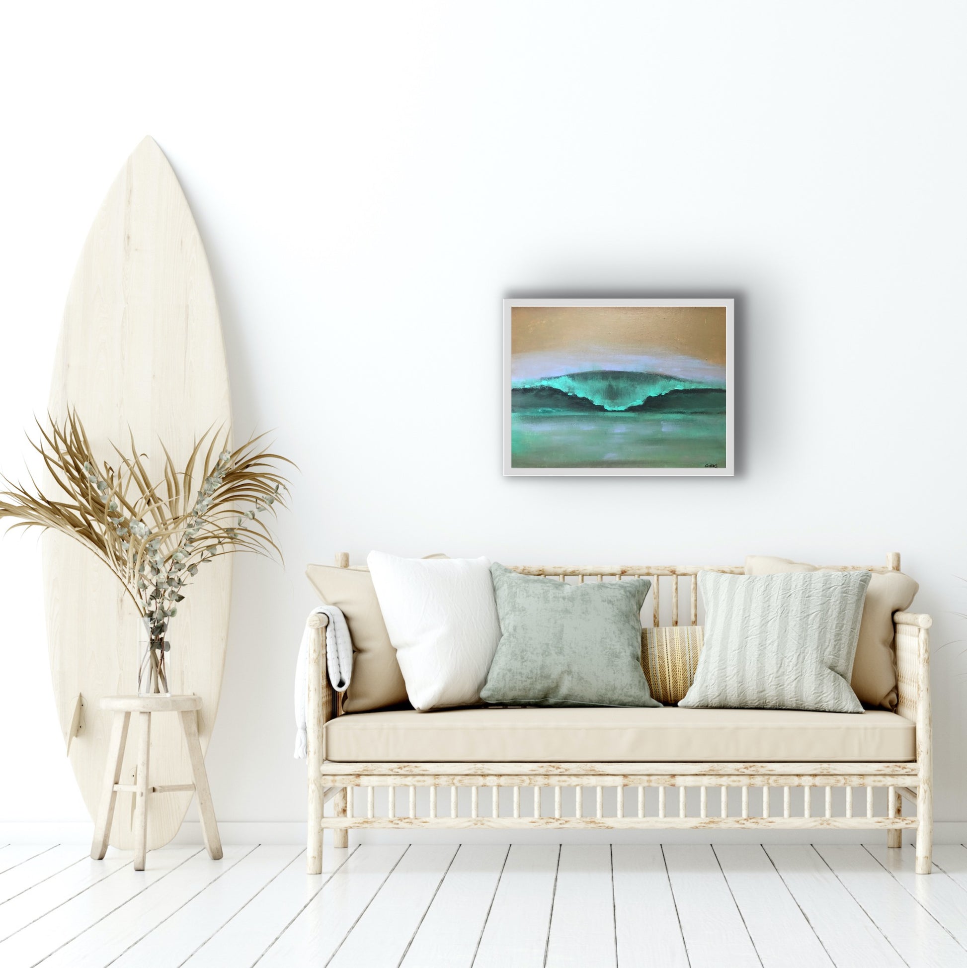 The Dark and Light series takes a modern simplistic approach to a classic beach and ocean scene. I use a dark under layer behind the waves, and a lighter wash on the sky and foreground that allows the natural wood grain to be a part of the painting. I also use perspectives and colors in variations and combinations that allow the collector to find that perfect piece.