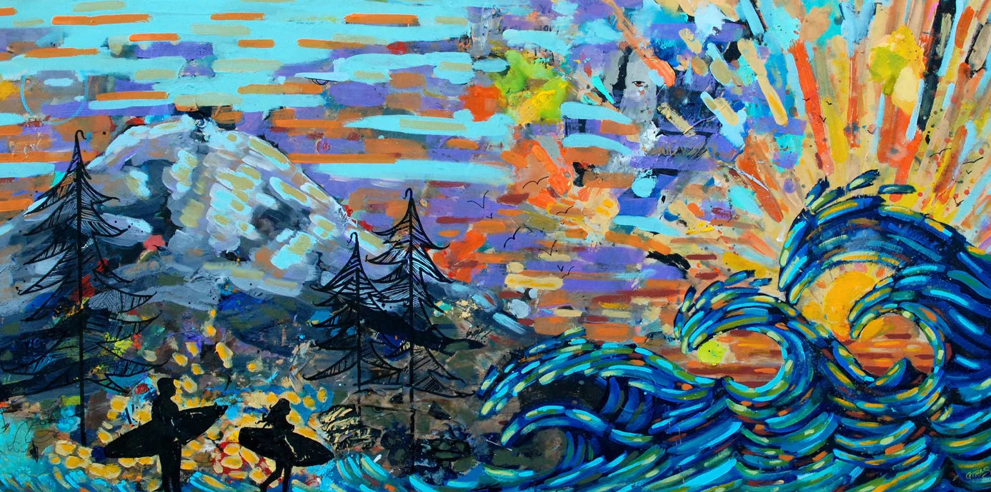 Nathan has created surf art work internationally in Fiji, Bora Bora, Moorea, Costa Rica, Mexico, Hawaii and Australia and has shown work in over 6 countries. His work has exhibited and has collectors in Florida, Washington, Oregon, New York, Hawaii, South America, Ireland, Sweden and of course California. He has been in over 80 gallery exhibits, shows, fairs, and been featured in 29 web and print publications. Self taught, he is influenced by Pollock, Van Gough, Cezanne, and others. Nathan was awarded the 2007 1st Annual Earth Day: "GAIA" Environmental Award for his constant efforts in providing philanthropic support to water related charities to include the Surfrider Foundation, Surfers Healing, Surf Aid international and various other charities.
